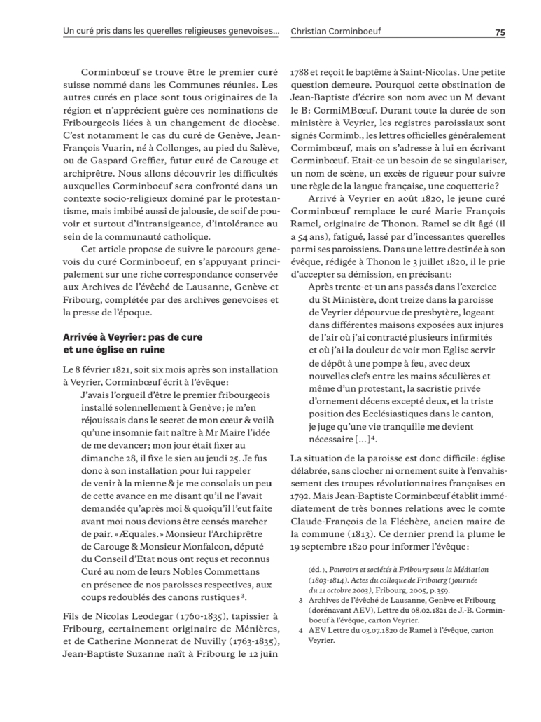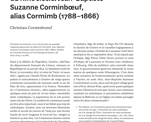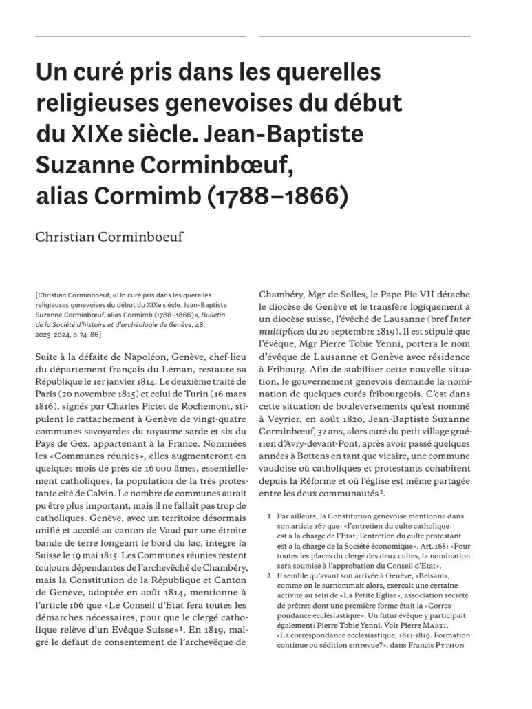 Le curé Jean-Baptiste Suzanne Corminboeuf (1788-1866)